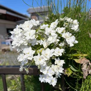 Bonsoir.🌆 我が家の紫陽花【スミダノハナビ】が咲き始めました〜 今年は、紫陽花が咲くのが早いですね〜 【スミダノハナビ】は、昨年お迎えしました…小さな苗で通販で購入して、今年はこんなに大きくなるとは〜 紫陽花は大きくなるらしいですが… 念願の【スミダノハナビ】です♪真っ白な紫陽花です🤍🤍🤍