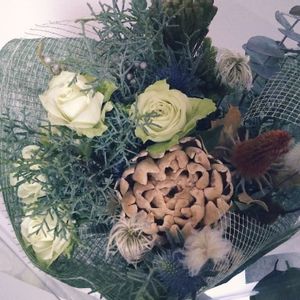 昨年はモミを大量に飾り過ぎました💦 花屋さんではヒヤシンスの球根と、ブルーアイス、バーゼリア・ストロベリー、白いのは名前を忘れました😁を調達。 ブルーアイスは良い香り❤ ヤドリギに出会いたかったけどバーゼリアも十分可愛いです😆