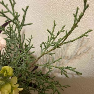 コニファー ブルーアイス ヒノキ科 ホソイトスギ属 Cupressus arizonica Blue Ice クリスマスのスワッグ作りの 素材として買ってきたブルーアイス。 1枝なのに この大木感🌳存在感。 そして、この木の放つ香りは 森の奥に誘ってくれる。いざなってくれる。 ( ´ỏ`)スー( ˙ロ˙ )ハー 森林浴。気持ちよ*ˊᵕˋ*🌳 スワッグやめて オリーブの枝を添え木にして 粉雪❄️🫧降らせて シンプルなツリー仕立ての水挿しにした。 うちのリビングは、 最早 森の中。 Forest✧︎ この木 育てたい。