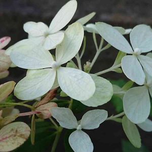 こんばんは😀 今日は、曇りで途中日も差す時間もあったけど…庭に出て作業する気にならず、家の中で昨日お連れしたコレオプシスの花ガラを取ったり(枯れた花がたくさんつきっぱなしだった)土の上に落ちてる枯葉を取り除いたりしたくらい。せっかく涼しかったのに勿体ない日曜日だったな😅 結局写真を撮りに行かなかったので、今日のpicも過去に撮って載せていなかったピラミッドアジサイ “サンデーフレーズ“。ピラミッドアジサイは、別名ノリウツギです。“サンデーフレーズ“は、咲き進むとピンクに変化するらしいですが、気候に左右されるらしく、今でもピンクにはなってないです😅購入して何年も経つけど、薄らとピンクになった事はあったけど… きっと関東では、付いていた札のように鮮やかなピンクになるなんて、あんまり無いんだろうな( ̄▽ ̄;) ピラミッドアジサイの花の下の葉っぱは、シルバープリペットの葉っぱです。今年は伸びた葉っぱが全て斑入りでは無く、緑になっていたので、緑の葉っぱを切ってたせいか花が咲かなくて残念でしたが、切ってからは、斑入りに戻ったので、結果オーライかな?来年は、緑の葉っぱが出てこないといいな(。-_-。)