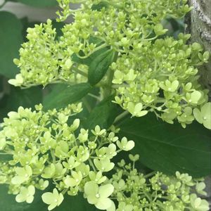 ノリウツギ ライムライト 頭が重くて地面につきそう💦 他の花房は雨風で痛んでしまいました なかなか思うような形になってくれません😟