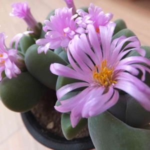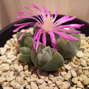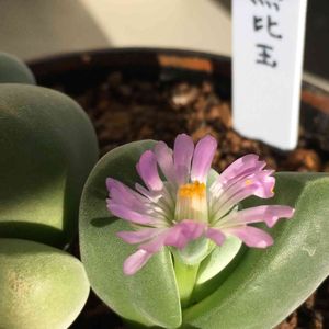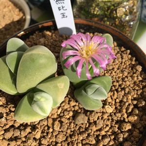 無比玉。これも鶴仙園 本当は神風玉に興味があったのですが、思った以上に大きくて保留に。 いろいろ見ていたら無比玉にビビッときて購入しました この質感が良い💕 蕾付きだったのでさっそくお花が咲いてます コノフィツムやリトープスは買うことはないと思ってたのにな~