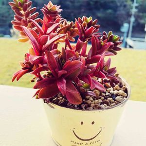 春に、お得なセットで購入し、、 使えずに夏の間放置していた多肉ちゃん達。 紅葉して可愛くなってアピールを送ってきていたので、ありったけ集めて寄せ植えにしたらなかなか立派なボリュームに☆