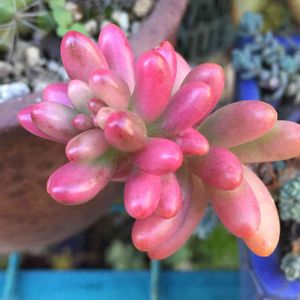駐車場脇に作ったセダムスペース。 虹の玉ちゃん、紅葉してきました❤️ 真夏も野ざらし日ざらしでも、元気です❤️