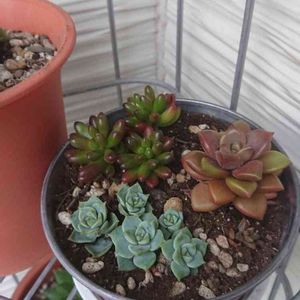 先日お迎えしていた多肉さん達✨✨ リメ鉢とまではいかないけど 鉢に色塗りをして 寄せ植えしてみました😊 多肉寄せ植え2度目にしては よく出来てると言い聞かせながらも ワンパターンだなと😓 リメ鉢も絵を描きたいけど アイデアが浮かばない😣