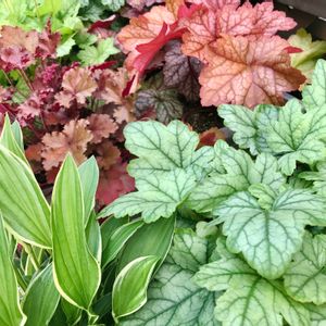 ヒューケレラ フレッシュグリーン ヒューケレラは、ヒューケラとティアレラの交配種です。ヒューケラの葉の美しさとティアレラの花の可愛さ、両方のいいとこどりです。特にこのフレッシュグリーンは、丈夫で育てやすく美しく、ヒューケラやティアレラ好きの方にはぜひおすすめしたい品種です♡