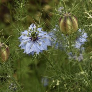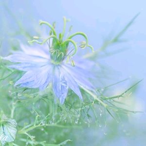 ニゲラ クロタネソウ 去年種を蒔いたのが、去年はほとんど咲かずに今年咲きました❇️💙❇️