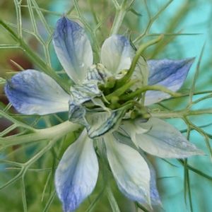 こぼれ種がプランターに飛び プランターや鉢からニゲラさんが 芽を出しています 蕾は青で喜んだのも束の間.... 覗いたら花弁裏がうっすらとBlue🤭 種からのよりこぼれ種が先に咲きました