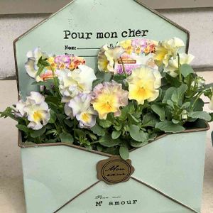 イリスプリエール 一輪ずつ違う花色で、これからの成長が 楽しみなビオラです。