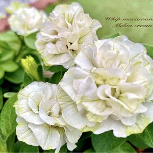 ✴︎八重咲きホイップマカロン 『メロンクリーム🍈』 2022年の新品種で、限定らしい、、?ので 珍しくミーハー心が出てしまい、 奮発してしまいました(⑉︎• •⑉︎)♡︎ グリーンはうっすらですが グラデーションが上品で可愛いんです🍀 あっ!(σ´з`)σこれを見たら スタバのメロンフラペチーノ飲まなきゃ❤︎