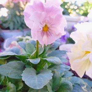 フリル咲きビオラ 恋みやび 植え付けからそろそろ1ヶ月 鉢からお花が溢れそう💙 ブルーの恋みやびさん 紫が強くなってきた💜 こんなに変化するんですね~❣️ 後ろにピンク系の 恋みやびさんがいるんですが ブルーの子が 背が高くなって見えない😅