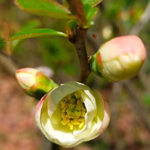 ボケの花 いざ開かんとしている姿も素敵! 蕊も美しい