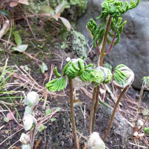 ゼンマイの新芽がモフモフです☺ 2021.3.30撮影 🏷木曜モフモフ 以下「四季の山野草」サイトより抜粋↓ ゼンマイの名は、若芽の丸まった様子が、時計などに使われるゼンマイ(発条)に似ることから。若芽は綿毛に覆われており、山菜にするには、この綿毛を取り去ってから。