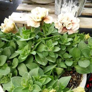 ペチュニア ホイップマカロン モカモンブラン 羽衣ジャスミン ホイップマカロンは八重でも大きなお花ですね💖 なんとも言えないアンティークなカラーで素敵です。