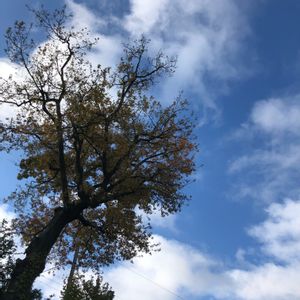 空、青い〜✨ 見上げる間も、どんぐりがバコンバコン落ちて来ます😆