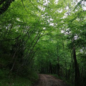 ナラの木が茂る山道🏞️ 夫はトレイルランニング🏃🏻♂️ 私とワンコはお花を📸撮りながら山歩き🚶♀️🐩
