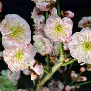 ハ ク バ イ (白梅) 白梅・・・ですよね~ 💕 🤔 ホントに そうですか~⁉️ 梅の「紅梅」「白梅」と言う 色の区別は、 "花の色" から 来ているのでありませんよ~。枝や幹の《髄》の色が 白いか?赤いか?で 区別されているのです。つまり、外観からは 紅梅か?白梅か?は 分からないのです。 おおよそ 髄の色と花色は共通しているようですが、中には『白い花の紅梅』も『赤い花の白梅』も 存在するのです。 外観からは 分からないと言いましたが、紅梅は新梢や萼の色が赤っぽく、白梅は緑っぽいという・・・傾向は あるようです。 従って 写真は 紅梅? 🥴 🏷ちっちゃいものクラブ 🏷ゲゲゲの月曜日 🏷蕊好きマニア 🏷純白マニア