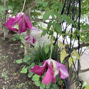 クレマチス ①プリンスチャールズ これまでで一番たくさん咲いています ②踊場 相変わらずかわいい~💕 ③白万重 昨年もうすぐ満開というときに急に立枯れ病に 慌てて挿し木をした苗に今年花が咲きました 親株も新しく芽が出てもうすぐ花が咲きそう ④冬咲きクレマチス 冬色のメロディ これも昨年夏半分枯れてしまったけど ↖️何とか復活した親株と↘️挿し木した株の 葉っぱがきれいでもりもり~