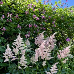 おはようございます😃 毎日暑くて水遣りが精いっぱいで、庭をじっくりと眺めることはほぼなくなってしまいました。 今朝久しぶりによく見てみたら こんな可愛い子達が頑張って咲いていましたよ♪ 今朝の庭から クレマチス踊場✨ 小さめで色は薄いけどいっぱい咲いています🥰 なんか涼しげ🩵 センニチコウと白花ユーパトリウム✨ センニチコウは種蒔きっ子で猛暑になってから定植しましたが、暑さ関係無くしっかり育って咲いています🎵