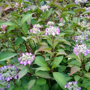 おはようございます🤗✨ 山紫陽花「烏葉」。ムラサキの花に、赤みがかった葉が美しい💜 今日も頑張っていきましょう♪ We can do it!