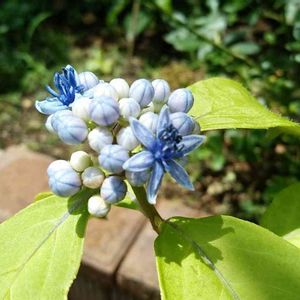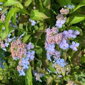 山あじさい 伊予獅子手毬の花。 小さい紫陽花なので花は5センチあるなしのミニチュア。可愛らしい❣️