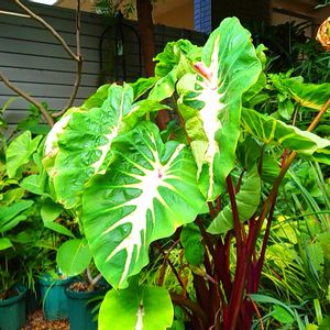 ■Colocasia esculenta White Lava ・コロカシア ホワイトラバ ラバ1号、丈夫で元気。冬は枯れてもまた春に出てきてくれることを願う🛐 君にぃ〜、願うぅ〜、願うぅ〜、願うぅ〜 朝顔先生が好きです。 庭が雑多すぎ。雑多にも程があるがあるじゃないかというなかれ。まだ未完成ゆえ、理想の庭を目指してサクラダファミリア中です🏰 最高気温29℃、最低気温21℃