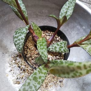 ドリミオプシス キルキー。未だに名前が覚えられない🤣🤣 狭いベランダでまた蹴っ飛ばしたのでこれは植え替えろってことかな💦 🐆紋みたいな柄がどうやらツボらしく集めてしまうな🤔 とりま、三株に分ける事に。パキッと割った根っこの断面よく乾かした方が良いのかな?