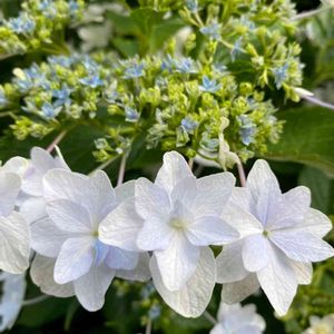 きょうのあ花なんですね♡ 紫陽花 実家通いは遠のいたけど、住んでくれてる我が息子に写真撮って送ってもらった😊 この2種しかないけど今年はよく咲いてる感じです💕 #隅田の花火 #ガクアジサイ
