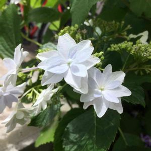 アジサイとクチナシのコラボです。 白のきれいさは・・・勝敗つけがたいですね。♪(^^)