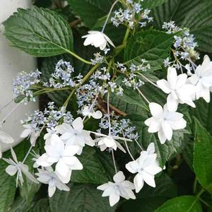 見切り品で連れ帰ったアジサイ。 花もない状態でしたが、淡い水色で咲いてくれました👍