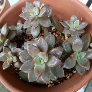 ブロンズ姫👸 ブロンズ色の葉っぱが 綺麗な多肉 ブロンズとは 「暗い赤みの黃」 という色を表しています もう少しです 理想の色に近付いてる 葉っぱは先端が上に 突き出しているのが 元気な証拠です 私の大好きな💗 ブロンズ姫です