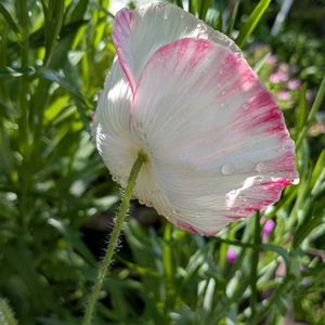 1..朝起きると 昨日の☔雨で あれれれれー🥵 はじめて自慢する美人の ポピーが可哀想に前のめりお顔が 塞がってしまってた💦💦 大変〜 後姿が良かったので写真を撮る つもりだったのに… 和紙のようにしっかりしてるので そっと お顔を 優しく捲るように直してあげました。 その後は逞しく花びらは5月の風に吹かれて捲れそう になったり 像さんの耳のよう! 😊 このうしろ姿のピンクの縁取りを写真に残したかったのです(🌼•͈ᴗ•͈)ꕤ*。゚ 2...因みに前の姿がこれ 3..真っ赤なポピーも素敵💕 白い縁取りがあったのね 良い一日をお過ごしくださいね🌿