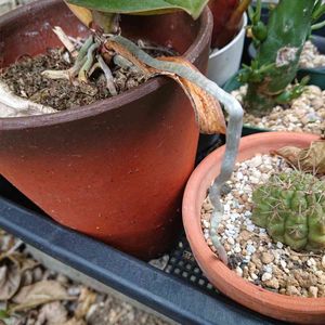 アガベ葉挿し発根 キタゾ━━━━(゚∀゚)━━━━!! 胴切り縦割りした時に根っこがちぎれてたのを3ヶ月土の上に放置してました ヾ(⌒(ノ'ω')ノ …とはいえ単葉挿しとまでは言えませんが、可能性ZEROではない事の証明にはなったかと (`・ω・)b