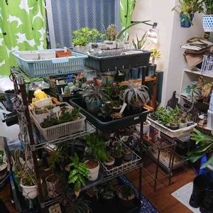【発根管理中】 未発根のカキコや植え付けた子株が小さすぎた場合、根の動きで土に潜るよりも早く株が浮き上がってくる場合があります (´・ω・) ではどうやって浮き上がりを抑えるか、画像を見れば分かると思うけど鉢ごとカキコ(子株)をテグスやワイヤーで固定しちゃえば解決しますよ ヽ(○︎´3`)ノ 盆栽の世界では割とポピュラーな活着方法なので時には視野を広げてみるのもいかがでしょうか? (。・ω・)ノ゙ ホントはワイヤーを土に貫通させて鉢底で結ぶのがデフォルトだけどな (›´A`‹ )