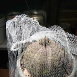 【爆発寸前】 爆発の恐れがあるため防爆装備(ゴミ取りネット)を被せております | |■\ |∀` ) ⊂ ノ |' ノ |__) 初めて採った時よりも巨大な気がしないでもないな (-⊡ω⊡)