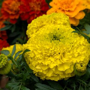 寄せ植え アフリカンマリーゴールド×2 マリーゴールド×1 銅葉のダリア×1 ロベリア×2