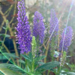 ベロニカ マリエッタはベロニカの中でも発色がよく 青が鮮やかな品種です。 背高のっぽの方で 草丈は1m位になりますが ピンと直立し枝が暴れることも少ないので 花壇の後方に植えるのが最適です。 耐暑性・耐寒性とも強く 初夏から秋まで長く花を咲かせます。 ヨーロッパ原産。 ゴマノハグサ科クガイソウ属の多年草