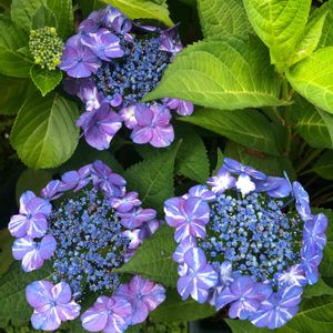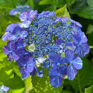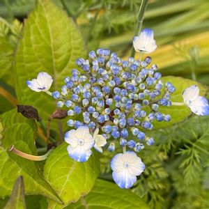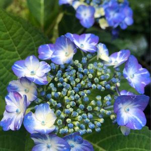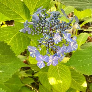 アジサイ サニーデイズ シンプルなガクアジサイなのですが、青地に白のストライプ模様が不規則に入る目立ちたがり屋さん✨ 葉の形や株姿から察するに、かなり濃くヤマアジサイの血が入っているように見受けられます。が、ガンガン直射日光に当てても葉焼けもせず、もりもり成長中✩.*˚ 出勤前のちょっとしたお庭パトロール中にパシャリ!