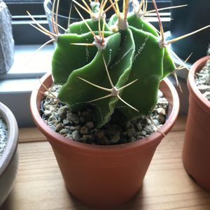 🏷みしょり隊 🦛ちゃんから頂いたサボテンの種も蒔いてから一月半、発芽しウジャウジャになったり、大きくなって棘も出てきたり、順調です。 ありがとうございます😊🎶