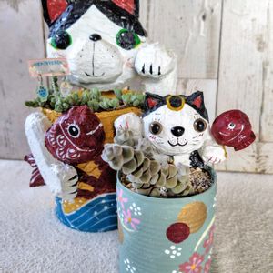 🏷トトの日 ニャンコ缶🐟 並ぶと可愛いな (៸៸᳐ФωФ៸៸᳐ )(៸៸᳐ФωФ៸៸᳐ ) かっきー産:碧魚連 mar産:玉稚児 45さん:ニャンコ缶 タイヨウ産:トトピック 自前は土だけやん🤣💦 あらためて····· 繋がりに感謝🙏 ありがとう(ㅅ´ ˘ `)💕