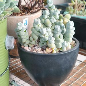 皆さん今日もお疲れ様です💦 今日は今シーズンで一番暑いとか…🥵 個人的には、昨日の朝のほうがしんどかったかなぁ🤔 おかげさまで、今日も乗り越えられたかなと思います💪笑 さて、今日は〜 Pic.1 クラッスラのブッダズテンプル Pic.2 脇芽も出てきています こんなに密な葉と独特の形に😍 お釈迦様のお寺🛕なだけあります笑 Pic.3 玉稚児ちゃんたち ぷくっとした葉が可愛いです😍 少し傷んでいたので、そこは切ってきれいにして土に挿してます🪴 Pic.4 エケベリアのレインドロップ錦 クシュっとした葉とピンクの葉の色が綺麗✨ Pic.5 まとめて寄せ植えにしてみました😄♪