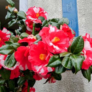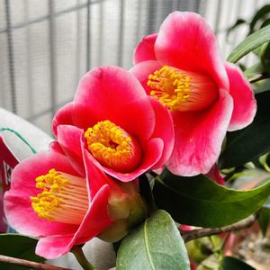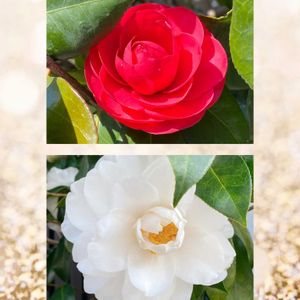 昨日の午前、市内を散歩途中に見かけた紅白の椿。