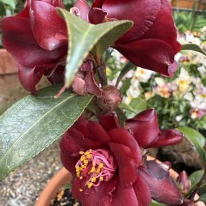 椿ナイトライダー♪ 今年は念願のツバキを手に入れた。 名前がかっこいい。 別名黒椿。シックな色もいい。 うーん、写真があまり綺麗じゃない。 花の持ちは良くないらしい。