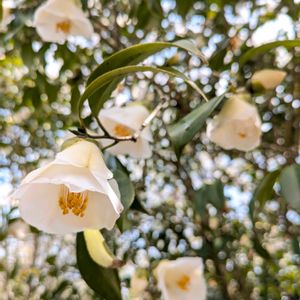 ツバキ こがねゆり 薄黄色のお花 枝が横張りで樹形がまとまりにくくて苦労してます