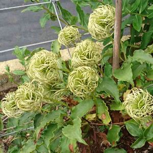 つる性植物🌀 花後には〰︎ こんなモジャモジャの 長毛の種子が付きました🎶 クレマチスの果球 キンポウゲ科