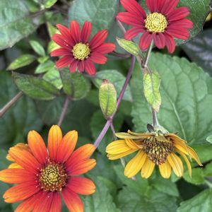 ❤️ヘリオプシス ブリーディングハーツ🧡💛 宿根性のヒメヒマワリ 沢山咲き出しました✨ 深い赤色❤️から褐色のオレンジ🧡から黄色💛へと、咲き進むごとに色が変化します 葉、茎の黒っぽいダークトーンも素敵✨ 💛コレオプシス ソランナ💛 6月から咲き続けていますが、 中心の赤い色が抜けて黄色のみの花びらになってます 🩷ペンタス 優しいピンクの星形花びら 可愛いなぁ😍 花壇で一緒に咲き揃ってます😊💕 いつまで続くこの猛暑🥵 夕食前によく庭に出ていましたが、 食欲がなくなるほどグッタリ💦 夕方は短時間の庭巡り変わりました‼︎