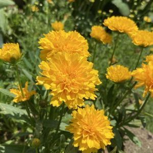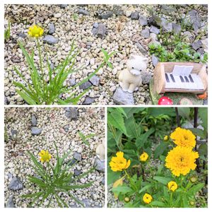 お友達から苗をプレゼントしていただき、2週間ほど前に地植えしたコレオプシスソランナ ゴールデンスフィアが咲き初めました。 たんぽぽみたいで、可愛いですね〜🥰元気が出ます。 ほとんど蕾がない状態からぐんぐん成長して、この品種の強さを実感しました! 秋までいっぱい咲いてほしいです💛