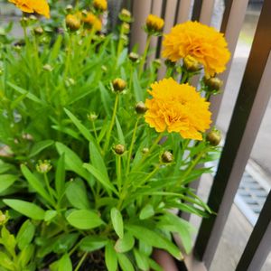 おはようございます♪ コレオプシス梅雨前に切り戻し、またまた開花しました。💠 おじぎ草は、去年咲いた花から種をとり植えてます。ただ中々大きくならないので多年草なのかなぁ?😓