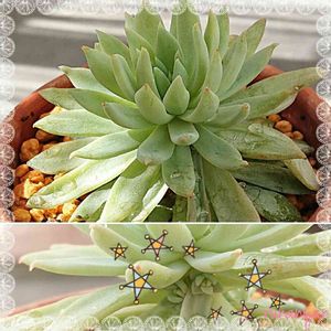 朧月増やすの楽しいw 左のでっかい朧月さんの下には いつぞやHCでブルーバードの名前で買った 謎多肉さんがいますw 絶対ブルーバードじゃないんですw なんだろなーまた写真撮ったら名前を教えてしよーw