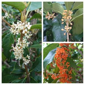 9月の末のこと… ほのかにいい香りがするなぁー✨って気がつくと… 「 銀木犀 」が咲いていた。 この白いお花が咲き終わる頃から、、、 「 金木犀 」の 蕾がふくらんでくる。金木犀は蕾でも香が強い。 咲きはじめたと思っていたら台風24号➰🌀が やってきた。 花盛りに暴風雨で強風を受け花が散り散り。 残念!!と枝を見回していると~ 幹の下段のほうで満開の🏵️花をみること。 香りを楽しむこと。秋を感じることができた!! ☺️ 😃💕 (*^-^) キンモクセイはGSで(昨日ことだけど)本日のお花でした。